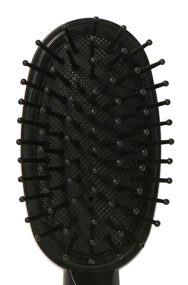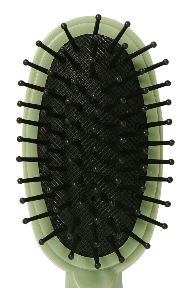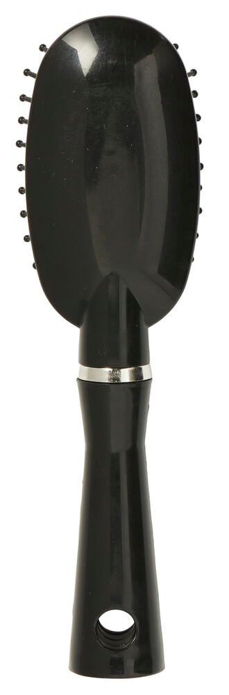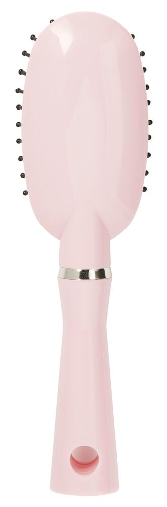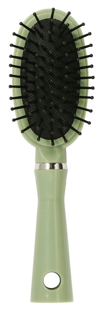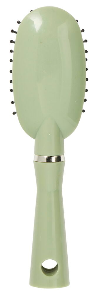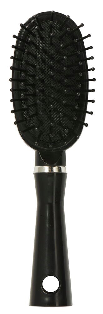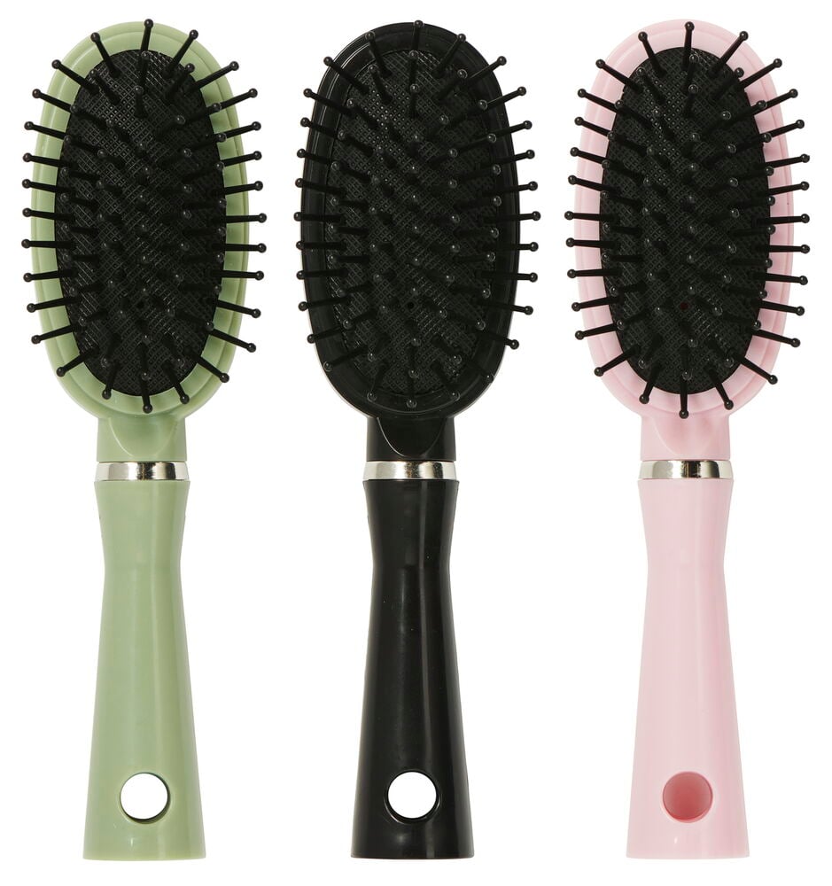 Kleine Haarbürste mit ovalem Bürstenkopf. Problemlos zum Mitnehmen in der Handtasche/im Necessaire.