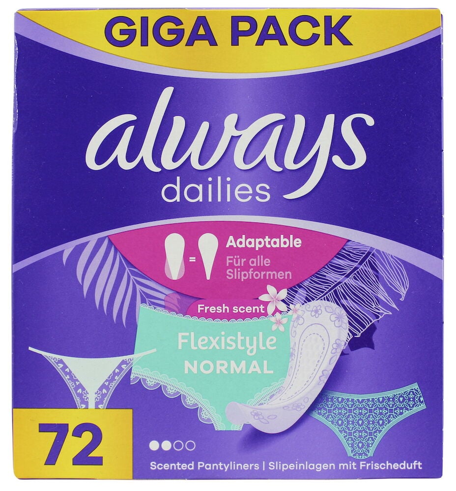 Mit den Always Fresh Slipeinlagen fühlst du dich in allen Situationen frisch und sicher. Das saugfähige Material ist sanft zur Haut. In verschiedenen Sorten.