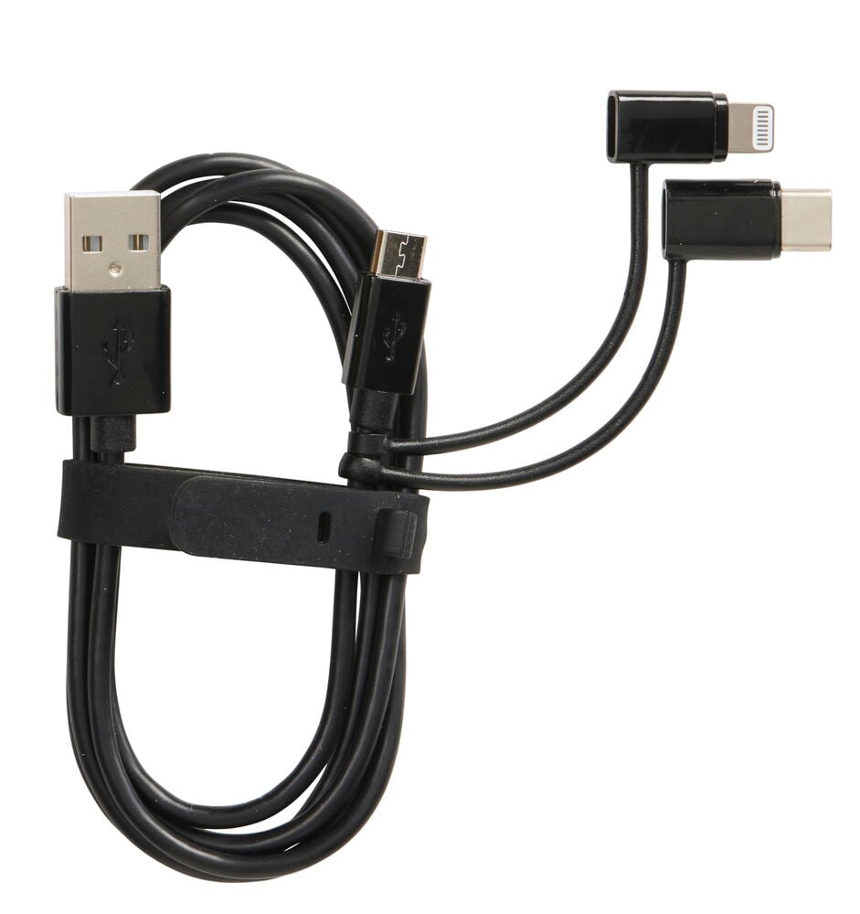 Mit diesem Kabel wird das Leben definitiv einfacher! Unser 3-in-1-Ladekabel mit seinen drei austauschbaren Anschlüssen ist dafür ausgelegt, für die meisten Geräte zu passen: Micro USB, USB-C und Lightning. Perfekt für alle, die mehrere Geräte haben, aber nur ein Kabel verwenden möchten, und mit einer Länge von 1 Meter bietet es optimale Flexibilität. Das Kabel unterstützt die Schnellladung mit 5V bis 2,4 A und Synchronisierungsgeschwindigkeiten von bis zu 480 MB/s. So ist es praktisch und effizient. Eine stilvolle Lösung, die mit all deinen Geräten harmoniert.