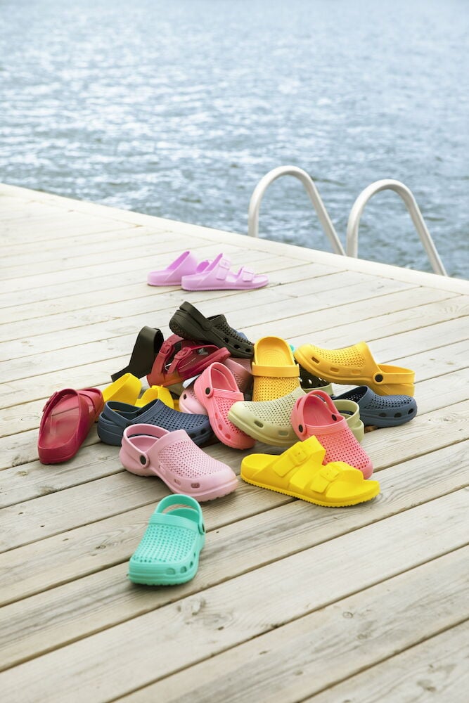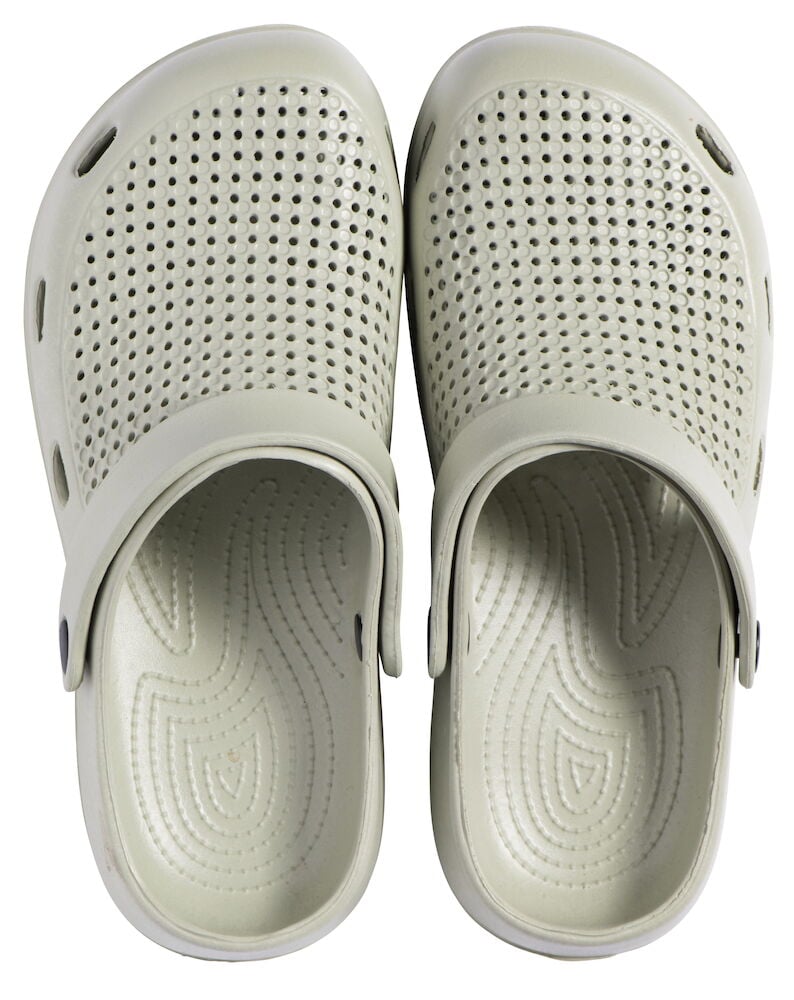 Pantoletten aus strapazierfähigem EVA-Kunststoff, in verschiedenen Farben und Größen erhältlich. Praktischer und bequemer Fersenriemen. Das Sortiment kann zwischen den Warenhäusern variieren.
