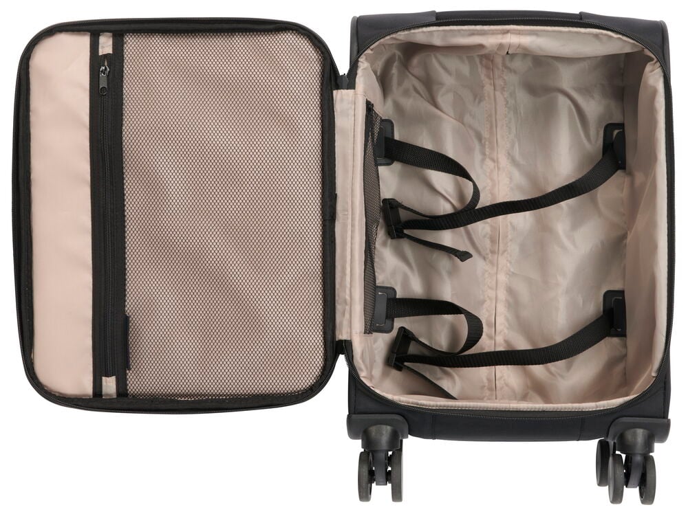 Innen ist der Koffer der Regent Interline vollständig mit strapazierfähigem Polyester gefüttert und mit praktischen Fächern ausgestattet, um Ordnung zu schaffen. Ein Trenner kann beispielsweise dafür verwendet werden, um saubere und schmutzige Kleidung voneinander zu trennen. Flexible Spanngurte halten den Inhalt sicher an seinem Platz.