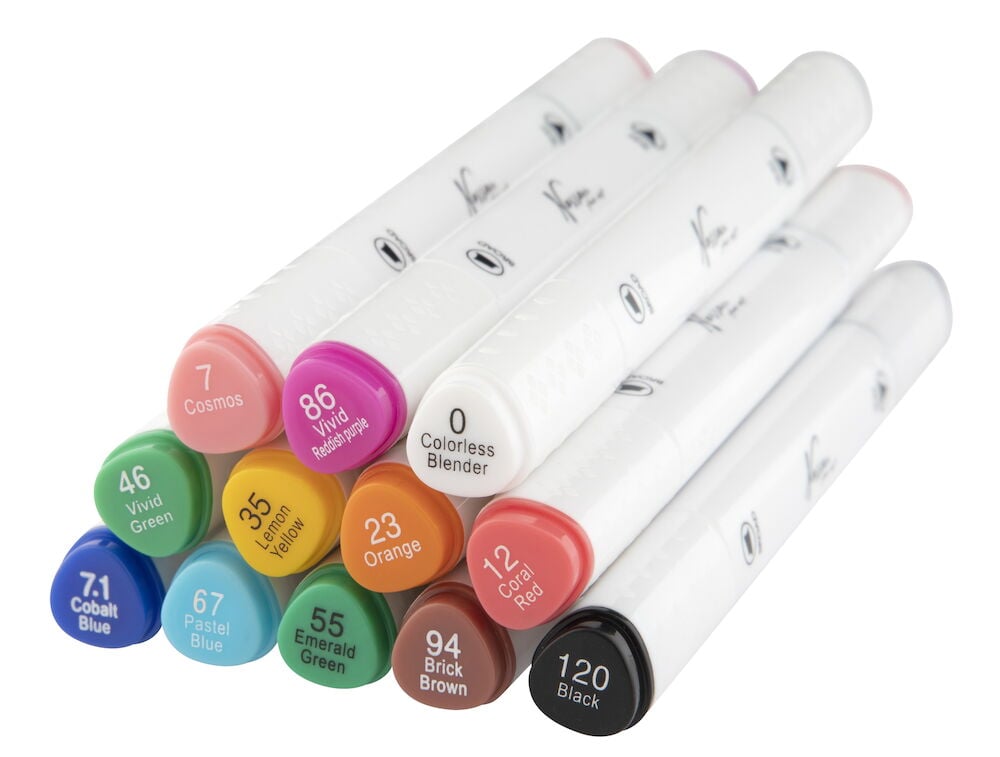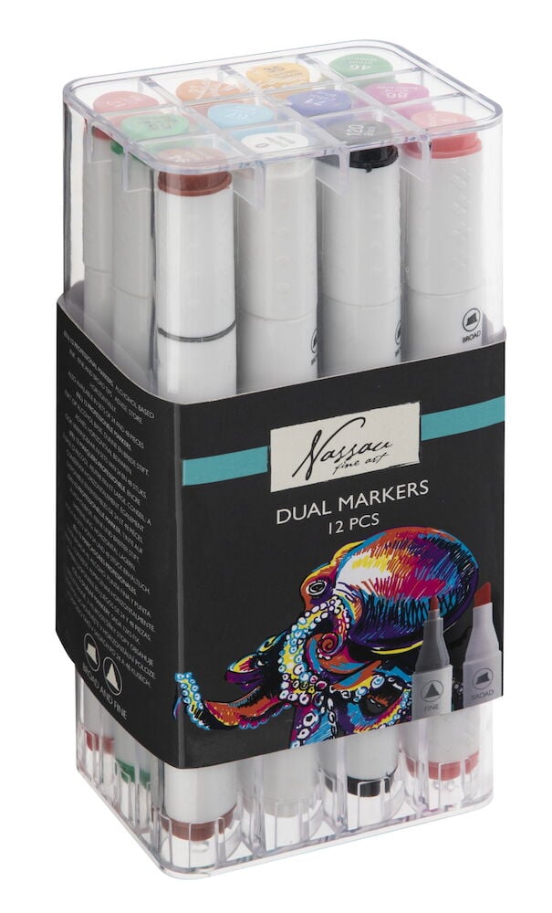 Mit den doppelseitigen Filzstiften auf Alkoholbasis von Nassau Fine Art kannst du wunderbar schreiben und zeichnen. Das eine Ende des Stifts hat eine runde Spitze, die je nach Papier und Druck eine Strichstärke von 2–3 mm ergibt. Das andere Ende des Stifts hat eine 2x6 mm Keilspitze, die für breitere Striche und das Malen größerer Flächen ausgelegt ist. Die Filzstifte sind in schönen Farben erhältlich und damit du den Überblick behältst, sind die Kappen sowohl mit Zahlen als auch mit Farbtönen gekennzeichnet.