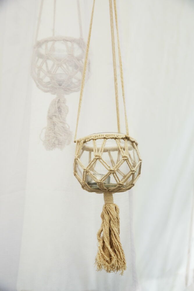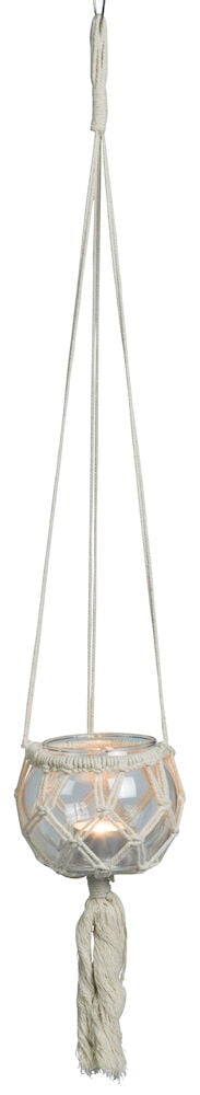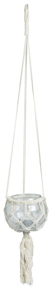 Schaffe eine unkonventionelle und entspannte Atmosphäre mit dieser charmanten Makramee-Hängekerze. Das handgeknüpfte Muster aus natürlicher Baumwolle umschließt die Glashalterung auf elegante Weise und schafft ein aufregendes Zusammenspiel verschiedener Texturen und Materialien. Wenn die Dunkelheit hereinbricht, verwandelt sich diese Beleuchtung in eine stimmungsvolle Lichtquelle, die einen warmen und einladenden Schein durch das Glas verbreitet – perfekt zur Weihnachtszeit oder an anderen dunklen Abenden im Jahr. Die Hängekerze eignet sich ideal zum Aufhängen im Fenster oder als effektvolles Detail über der Sofagruppe.