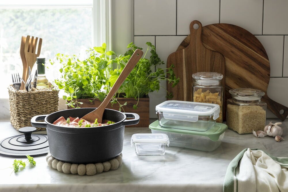 Topfuntersetzer aus Wolle, erhältlich in mehreren Farben.