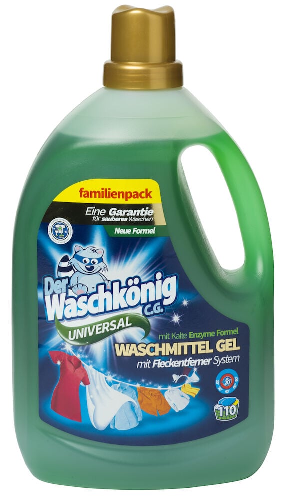 Flüssigwaschmittel Der Waschkönig, in verschiedenen Sorten erhältlich.