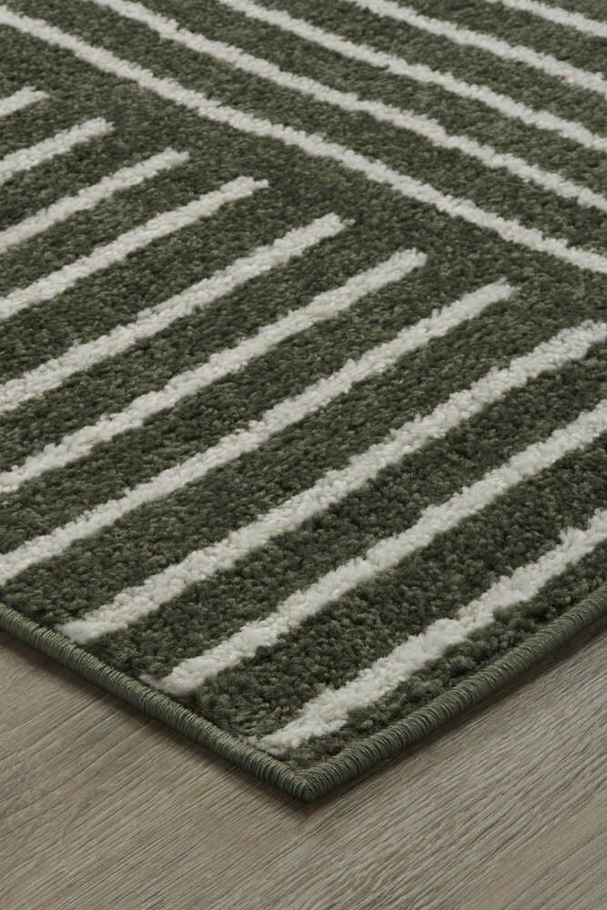 Erhöhe mit dem Frieze-Teppich Fanny den Wohlfühlfaktor im Wohnzimmer, Schlafzimmer oder in der Küche! Der Teppich hat ein Grafikmuster und eine wunderschöne grüne Farbe. Dank seiner schalldämpfenden und wärmenden Eigenschaften eignet er sich perfekt für viele verschiedene Räume. Der Teppich aus Synthetikmaterial ist pflegeleicht und lässt sich mühelos von Flecken reinigen.