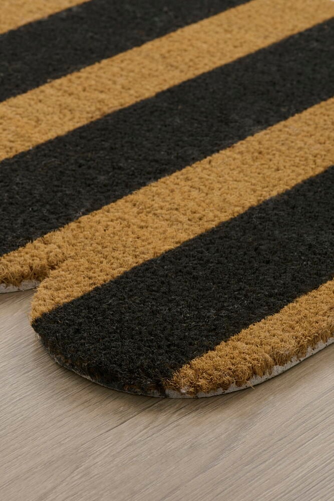 Leona ist eine gestreifte Fußmatte aus langlebiger Kokosfaser. Mit ihrer Form fällt sie wirklich ins Auge. Die geraden Farbstreifen in Dunkelgrau und Natur sind mit einem verspielten, skulpturierten Rand in Wellenform kombiniert, die dem Teppich eine persönliche, stilvolle Note verleiht. Leona ist eine Fußmatte, die funktional und stilvoll ist – und direkt am Eingang die richtige Atmosphäre verbreitet.