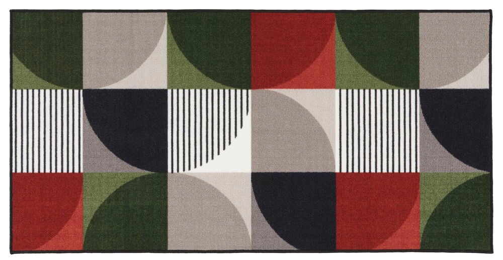 Fia ist ein moderner Läufer mit einem auffälligen, geometrischen Muster in gedämpften Herbstfarben. So bringt er eine warme und einladende Atmosphäre in dein Zuhause. Die Kombination aus dunkelgrünen, roten und beigen Farbtönen sowie grafischen Formen verleiht dem Teppich einen modernen Look, der ebenso gut in den Flur wie in die Küche oder schmale Räume passt. Die getuftete Oberfläche aus Synthetikmaterial macht den Teppich weich und langlebig, lässt sich dabei aber leicht staubsaugen und fleckfrei halten. Eine praktische Lösung für Haushalte, in denen immer viel los ist. Fia hat eine gummierte Rückseite, die den Teppich sicher an seinem Platz hält – und das Rutschrisiko reduziert. Mit seinem ausdrucksstarken Design und den funktionalen Eigenschaften ist Fia perfekt für alle, die einen Teppich suchen, der Ästhetik und praktische Funktion vereint.