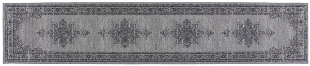 Greta ist ein stilvoller graue Läufer mit dekorativem Printmuster, das an klassische orientalische Teppiche erinnert. Das elegante Design erzeugt einen gemütlichen und einladenden Eindruck und schafft im Eingangsbereich, im Flur und in anderen engeren Durchgängen mühelos eine stilvollere Atmosphäre. Die getuftete Oberfläche sorgt für einen weichen und strapazierfähigen Teppich, der den Belastungen des Alltags standhält und sich bei Bedarf leicht staubsaugen und abwischen lässt. Die gummierte Unterseite hält den Teppich sicher an seinem Platz – ideal für Flächen mit viel Betrieb, wo ansonsten hohe Rutschgefahr bestehen kann. Greta ist in mehreren Größen und als Teppich in breiteren Maßen erhältlich. So lässt er sich leicht auf die Abmessungen und die Funktion eines Zimmers abstimmen. Greta kombiniert Ästhetik und praktische Funktion, so kannst du mühelos Komfort und Stil in dein Zuhause bringen.