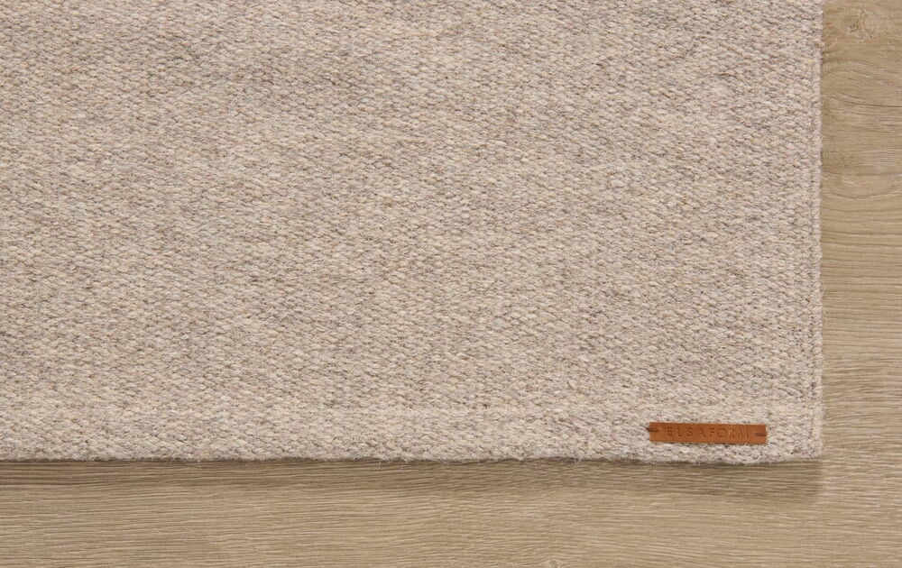 Wolle ist ein natürliches Material, das strapazierfähig und schmutzabweisend ist. Dank der natürlichen Fette, die die Wolle enthält, bleibt Liz länger frisch – der Schmutz setzt sich auf der Oberfläche ab und lässt sich leicht durch Staubsaugen, Ausschütteln oder Lüften entfernen. Der Teppich hat eine weiche Struktur, die wunderbar weich unter den Füßen liegt. Ein Elsaform-Aufnäher ist ein dezentes Kennzeichen für Qualität und bewusstes Design.
