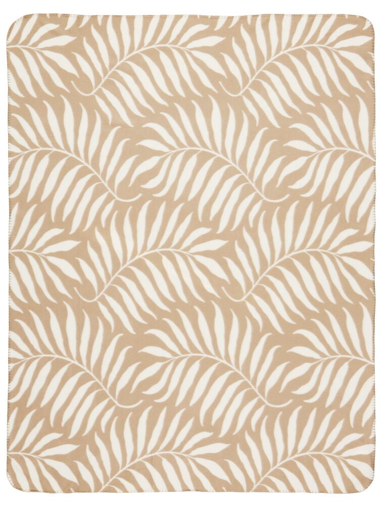 Eine leichte beige Decke mit einem Blattmuster in Naturfarbe.
