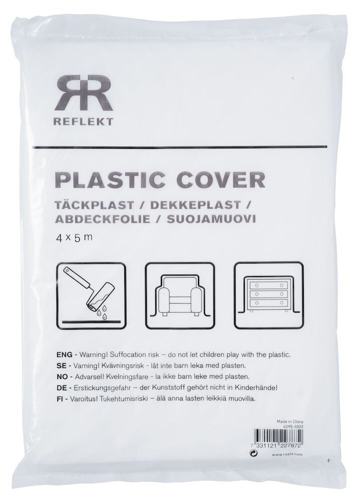 Gewicht transparenter Abdeckfolie in Plastikverpackung.