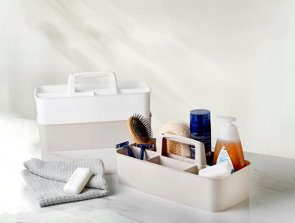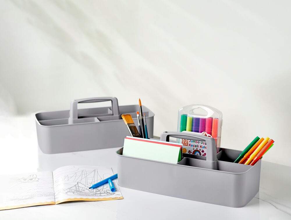 Aufbewahrungsbox mit fünf separaten Fächern – so wird Ordnung halten kinderleicht. Offene Fächer und Sortierfächer ermöglichen, sich schnell einen klaren Überblick über den Inhalt zu verschaffen. Perfekt zum Organisieren von Schreibtisch, Gewürzen, Hobbys, Make-up usw. Der intelligente Griff macht es einfach, die Box vom Regal auf den Tisch oder Herd usw. umzustellen.