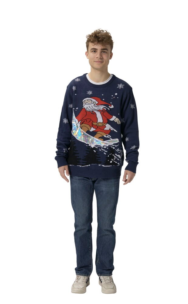Weihnachtspullover LEDXL Dunkelblau Snowboarding Santa