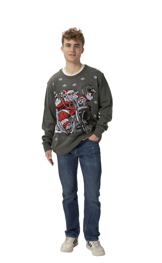 Weihnachtspullover LEDXXL Dunkelgrau Motorcycle Santa
