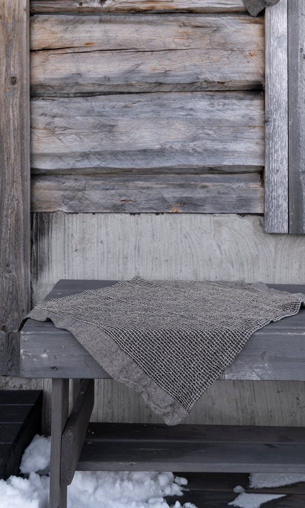 Yhden hengen laudeliina. Kierrätysmateriaalista valmistetuille Kenno-saunatekstiileille on ominaista kankaan pehmeys ja eloisa tekstuuri. Varovainen vesipesu 60 astetta.