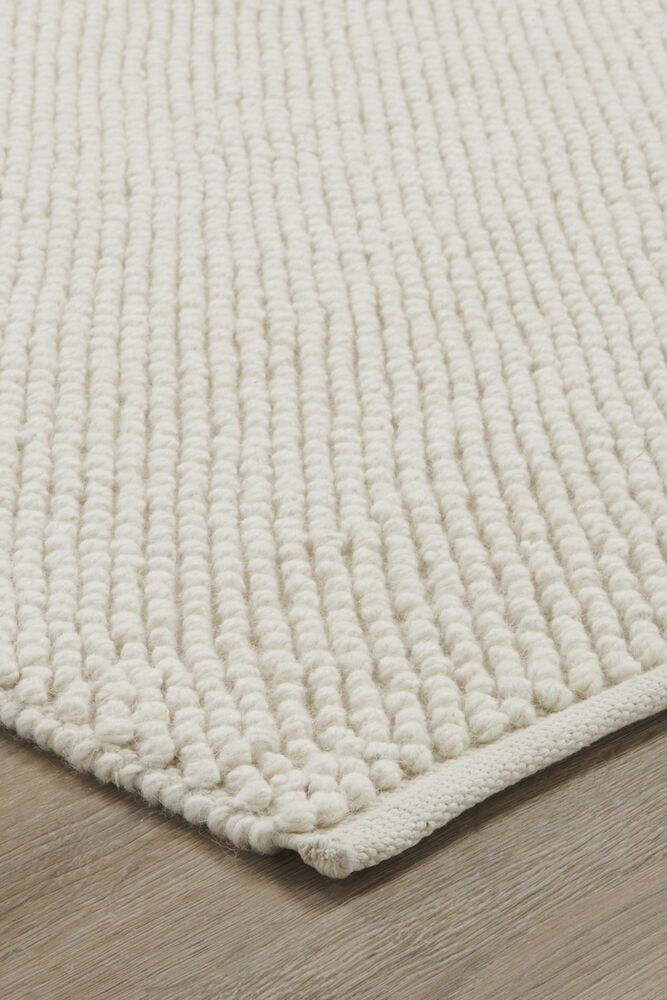 Elsaform Anne on ajaton villasekoitematto, joka tuo mieleen skandinaavisen luonnon ja käsityöperinteen. Se on kudottu käsin pienistä kierretyistä lankapallosista, jotka antavat pehmeän pyöreän, lähes solmuja muistuttavan rakenteen – ilme, joka on samanaikaisesti sekä maalaismainen että moderni. Rauhallinen luonnonvalkoinen pinta luo huoneeseen harmonisen vaikutelman, ja se toimii yhtä hyvin olohuoneen kuin eteisen tai makuuhuoneen peruselementtinä. Materiaali hylkii likaa villan omien rasvojen ansiosta – lika ja pöly pysähtyvät pinnalle, josta ne on helppo poistaa imuroimalla tai tuulettamalla. Matto on jalan alla pehmeä, ja sitä on saatavana erikokoisina ja -muotoisina malleina perinteisistä huonematoista lämmittäviin käytävämattoihin kodin vilkkaimmissa paikoissa. Koska jokainen matto on kudottu käsin, jokainen on myös ainutlaatuinen ja tuntuu vieläkin aidommalta.