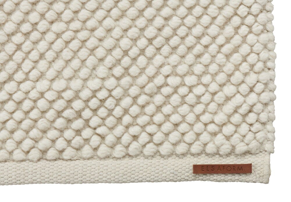 Elsaform Anne on ajaton villasekoitematto, joka tuo mieleen skandinaavisen luonnon ja käsityöperinteen. Se on kudottu käsin pienistä kierretyistä lankapallosista, jotka antavat pehmeän pyöreän, lähes solmuja muistuttavan rakenteen – ilme, joka on samanaikaisesti sekä maalaismainen että moderni. Rauhallinen luonnonvalkoinen pinta luo huoneeseen harmonisen vaikutelman, ja se toimii yhtä hyvin olohuoneen kuin eteisen tai makuuhuoneen peruselementtinä. Materiaali hylkii likaa villan omien rasvojen ansiosta – lika ja pöly pysähtyvät pinnalle, josta ne on helppo poistaa imuroimalla tai tuulettamalla. Matto on jalan alla pehmeä, ja sitä on saatavana erikokoisina ja -muotoisina malleina perinteisistä huonematoista lämmittäviin käytävämattoihin kodin vilkkaimmissa paikoissa. Koska jokainen matto on kudottu käsin, jokainen on myös ainutlaatuinen ja tuntuu vieläkin aidommalta.