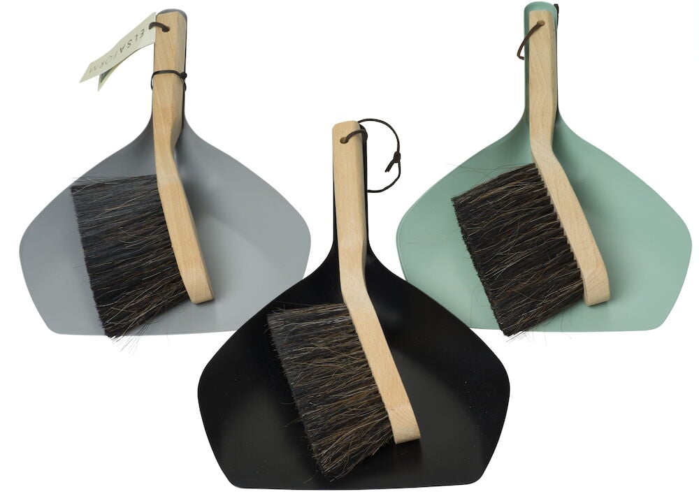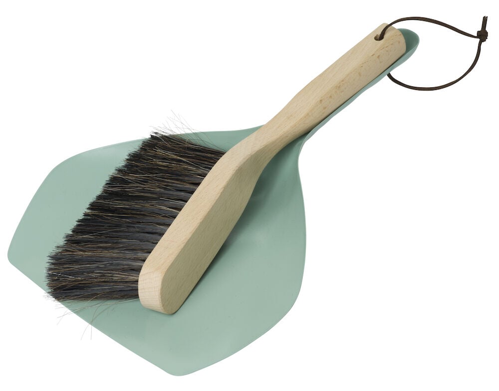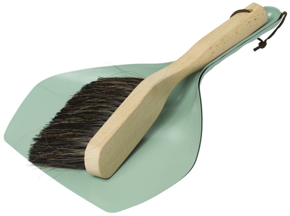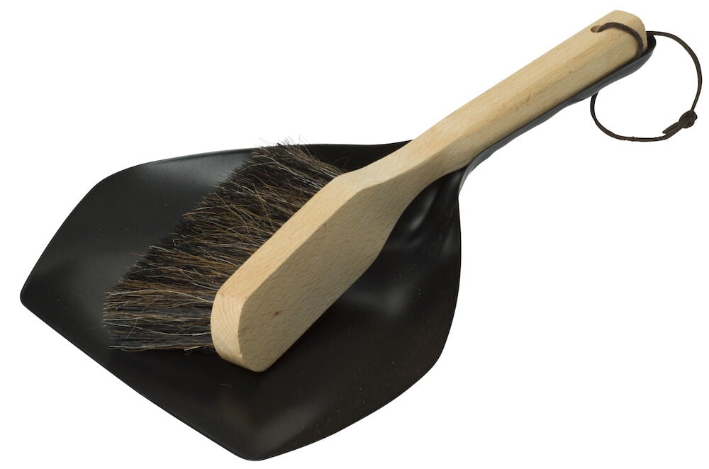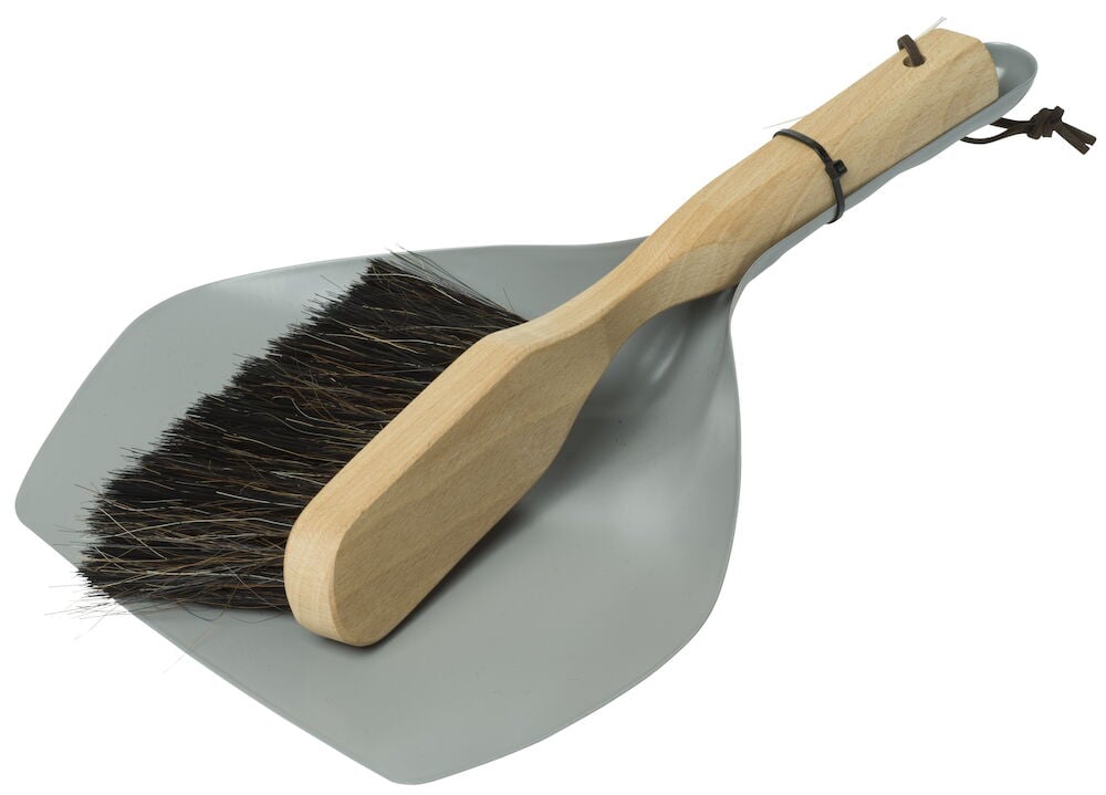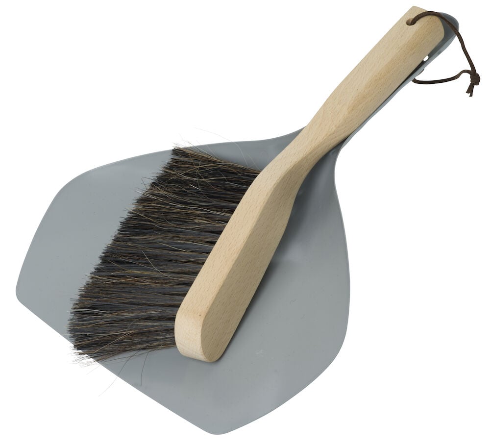 Rikkalapio ja -harja, jossa harja hevosen jouhia/PBT-muovia, varsi pyökkiä. Rikkalapio metallia.