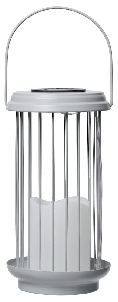 Harmaa alumiinitolppa mustalla muovikorkilla ja pohjalla.