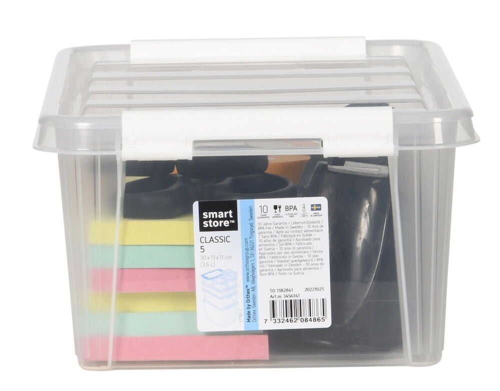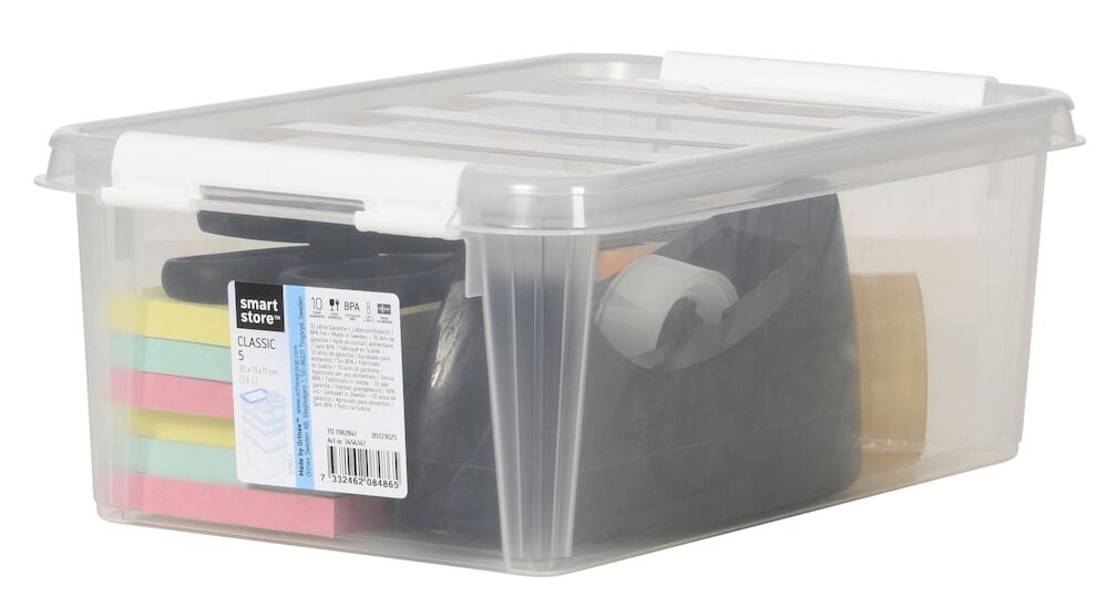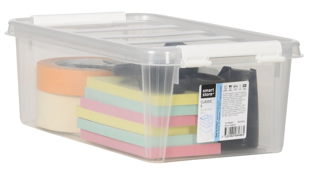SmartStore Classic. Valkoiset kiinnikkeet. Saatavana useita eri kokoja. 10 vuoden takuu. Kestää lämpötiloja –40 °C … +100 °C. Materiaali hyväksytty elintarvikekäyttöön, ei sisällä BPA:ta.