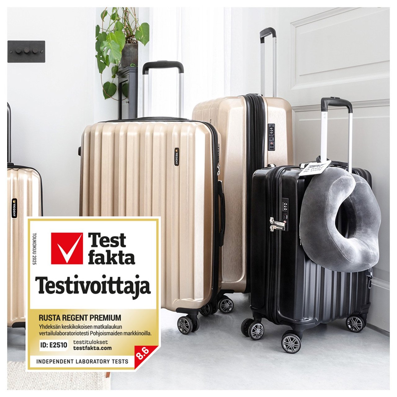 ABS/PC-kalvo. Regent Premium sarjan laukuissa perusmuovina on ABS, joka tekee laukusta kovan ja kestävän. Sen päällä on joustavasta ja kestävästä muovilaadusta, polykarbonaatista, valmistettu muovikalvo. Tämä kalvo toimii ylimääräisenä suojakerroksena ja suojaa laukkua paremmin iskuilta ja kolhuilta.