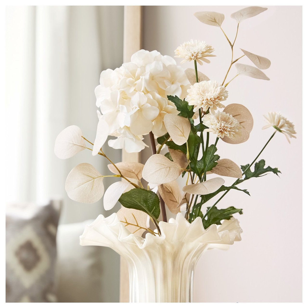 Sinun ei tarvitse sitoa kokonaista kimppua tuodaksesi vihreyttä kotiisi, muutama kuivattu oksa tai tekokukka voi riittää. Valitse mielellään näyttävä maljakko, jotta saat luotua tehokkaan katseenvangitsijan huoneeseen.