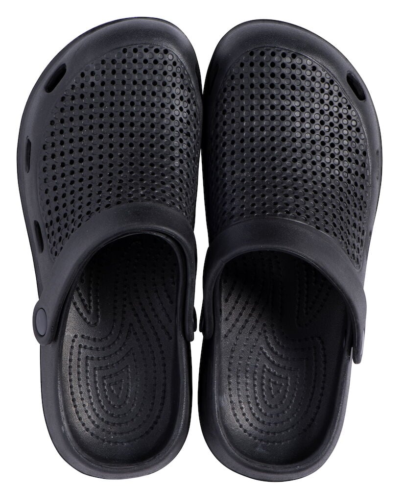 Tøfler av slitesterk EVA-plast, finnes i flere forskjellige farger og størrelser. Praktisk og komfortabel reim rundt hælen. Utvalget kan variere fra varehus til varehus.