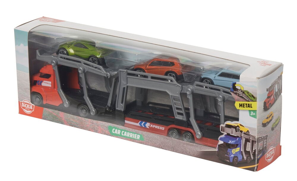 Dickie Toys presenterer et spennende leketøysett som vekker glede hos bilinteresserte barn fra tre år. Settet består av en robust bilfrakter av plast samt tre detaljrike lekebiler av robust metall. Alle kjøretøyene har bevegelige hjul for realistisk lek. Med bilfrakteren kan barnet laste og losse bilene – perfekt for å utvikle finmotorikken!