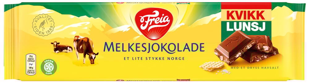 Freia melkesjokolade 190–200 g. Finnes i flere smaksvarianter.