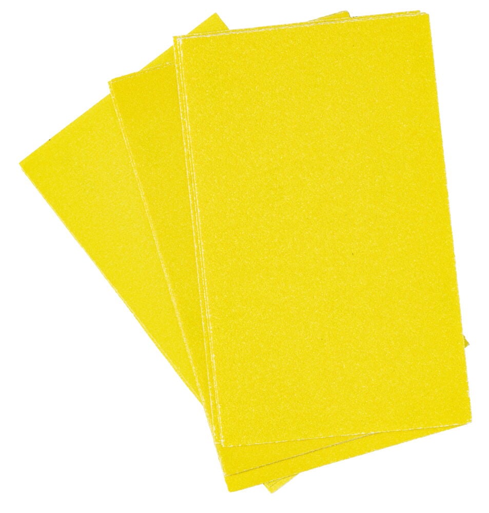 Sandpapir, 10 ark. 3 stk. P40 grov, 4 stk. P80 medium og 3 stk. P120 fin. Mål: 140x230 mm.