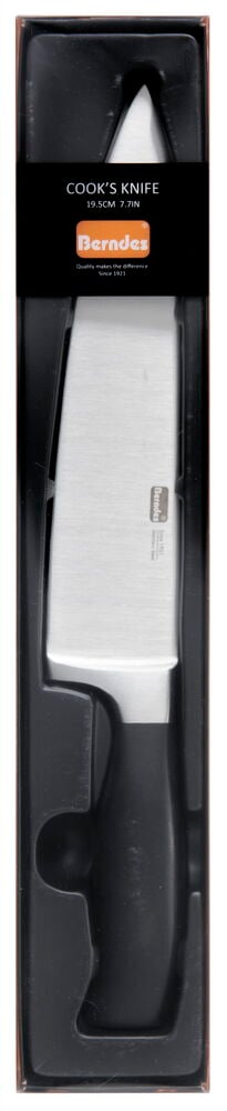 En kokkekniv er helt uunnværlig på ethvert kjøkken. Det er en funksjonell kniv som kan brukes til mange forskjellige oppgaver på kjøkkenet. Hvis du har en god kokkekniv, blir det både morsommere og enklere å lage mat. Kniven fra Berndes er en kokkekniv av god kvalitet, som du kommer til å få glede av hver dag. Kokkekniven er også en fin gave å gi bort. Du kan vaske kniven i oppvaskmaskin, men for lengre levetid anbefaler vi at du vasker den for hånd.