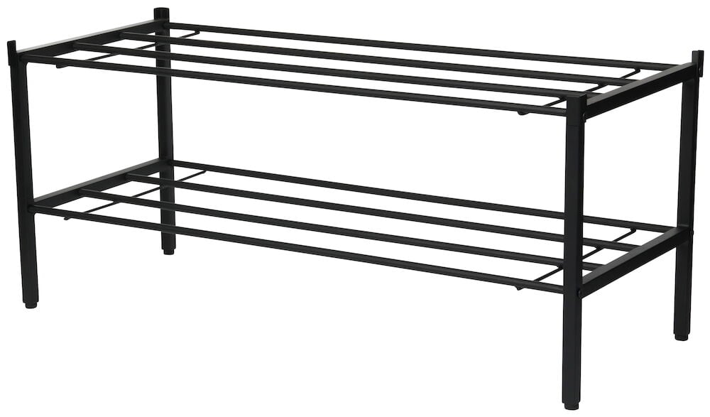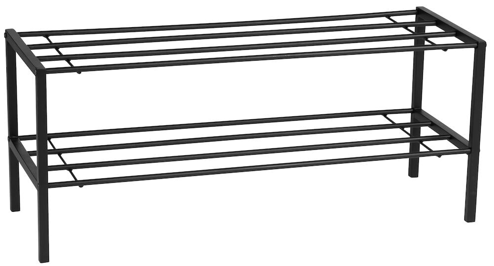 Få orden i skoene med skohyllen Sten. Sten er en skohylle i metall som gjør seg like godt i gangen som i walk-in-garderoben. Hyllen kan brukes alene, men har du mange par sko og vil bruke flere hyller, går det fint å stable dem oppå hverandre og feste dem med tilbehøret som følger med.