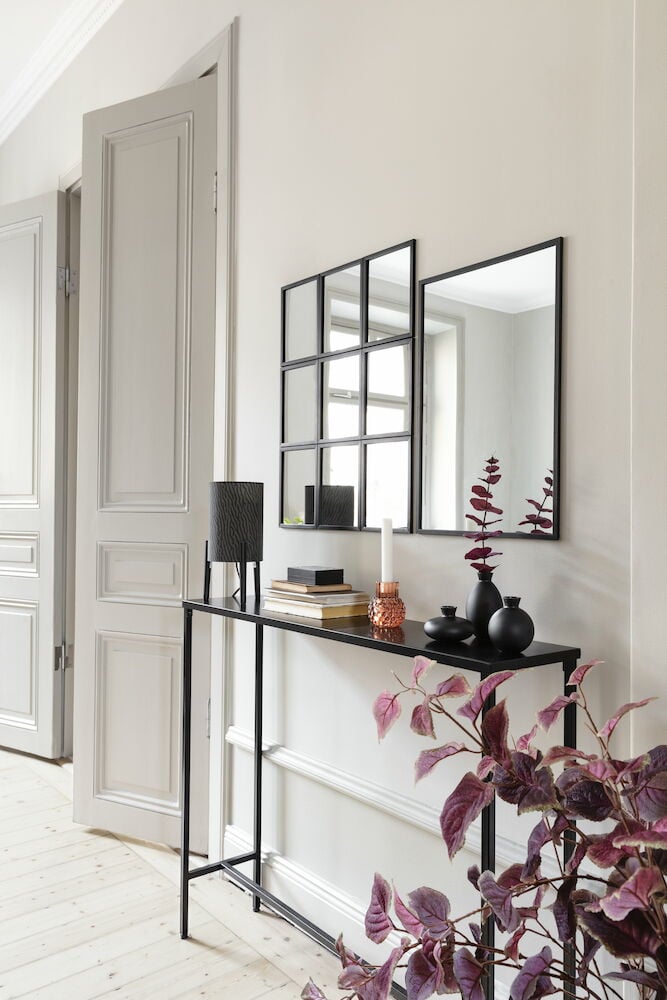 Speil Staffan med ramme i farget polystyrenplast. Finnes i flere størrelser og farger.
