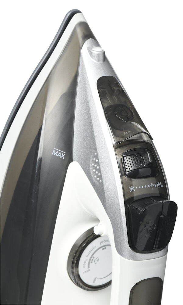 Dampstrykejern med keramisk såle for bedre glid. Avtagbar vanntank som rommer 190 ml. Har tre funksjoner: tørr, spray og loddrett damp, som gjør at det også kan brukes som steamer. Strykejernet er selvrensende med innebygd dryppstoppsystem og anti-kalkfunksjon. Effekt: 2200 W.