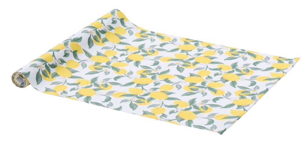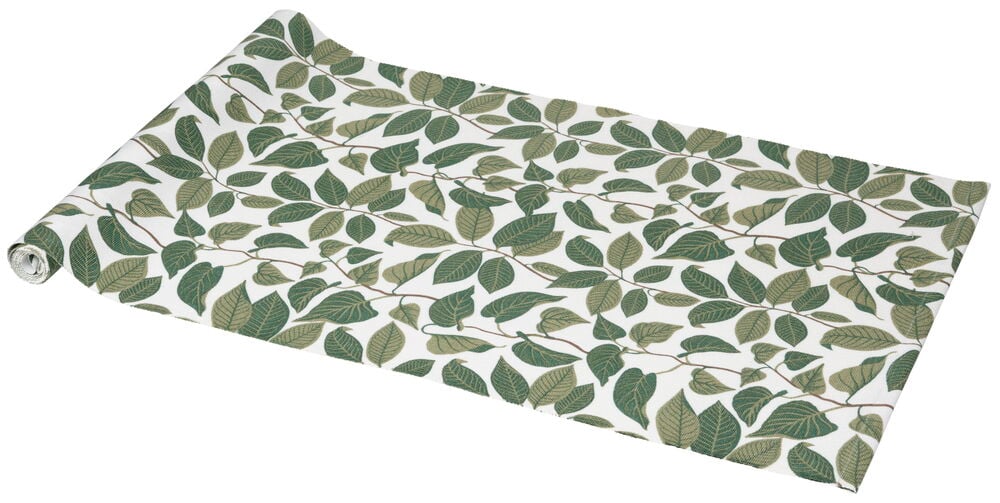 Bordløper i bomull med grønt bladmotiv.