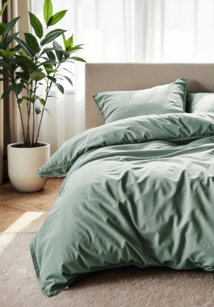 Sengesett Vida med dynetrekk og putevar. 100% bomull i toskaftsbinding med trådtetthet 144. Mål: 150x200 cm + 50x60 cm.