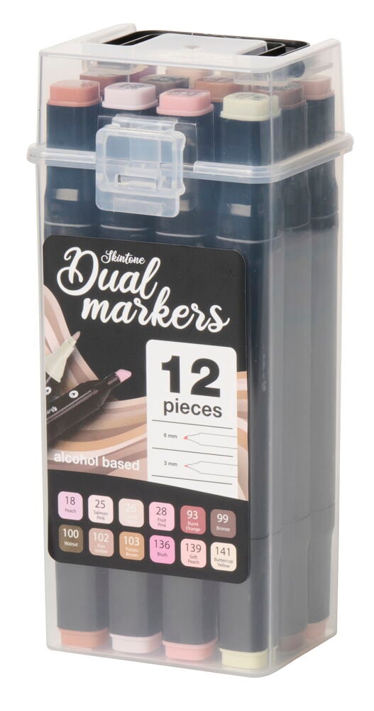 Tuschpennor, dubbelsidiga12-pack Beiga toner Alkoholbaserade