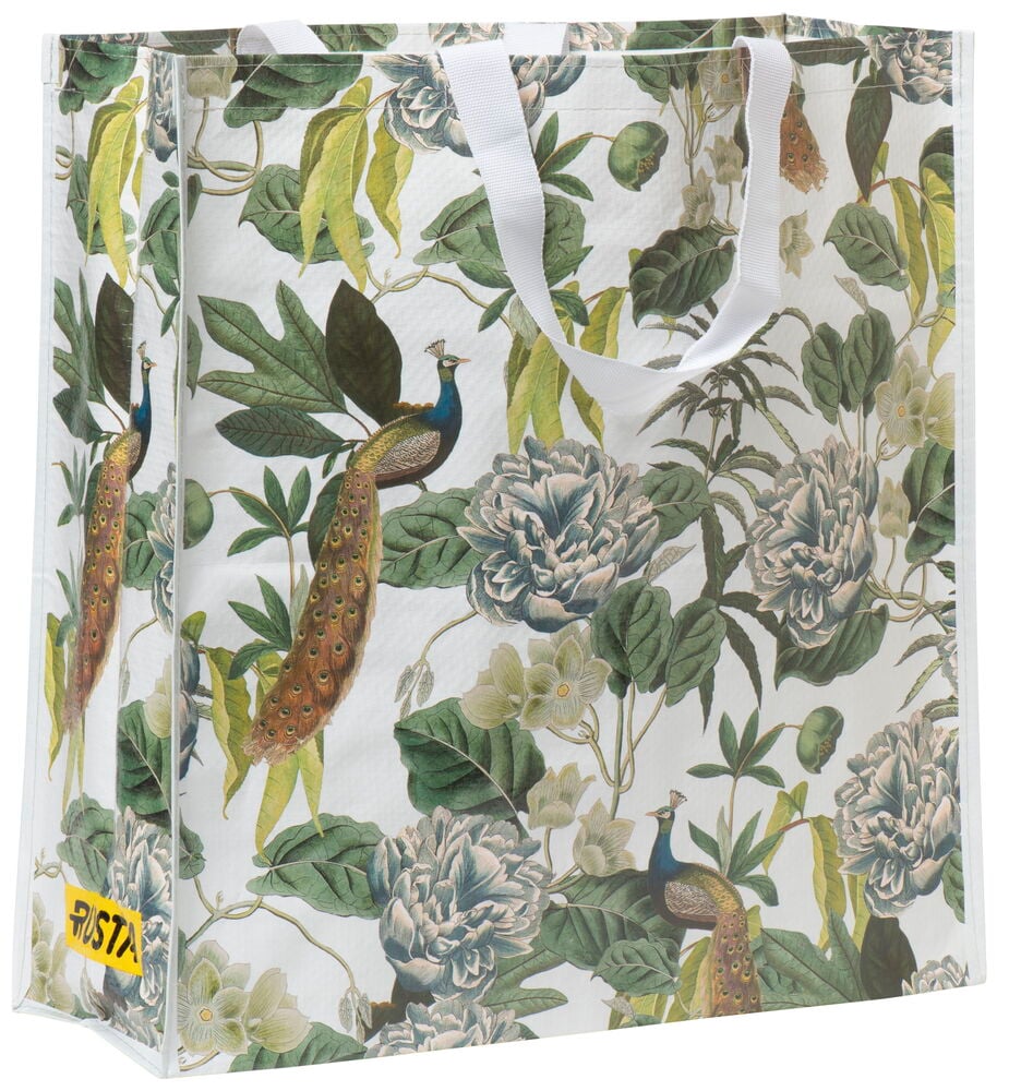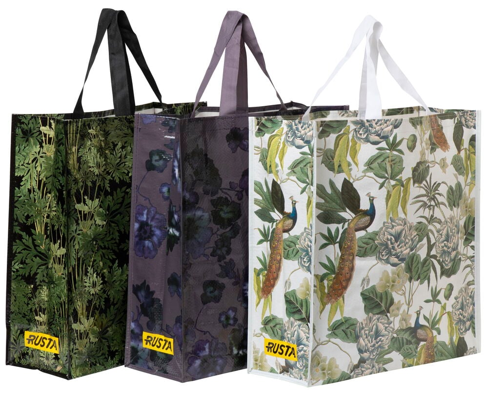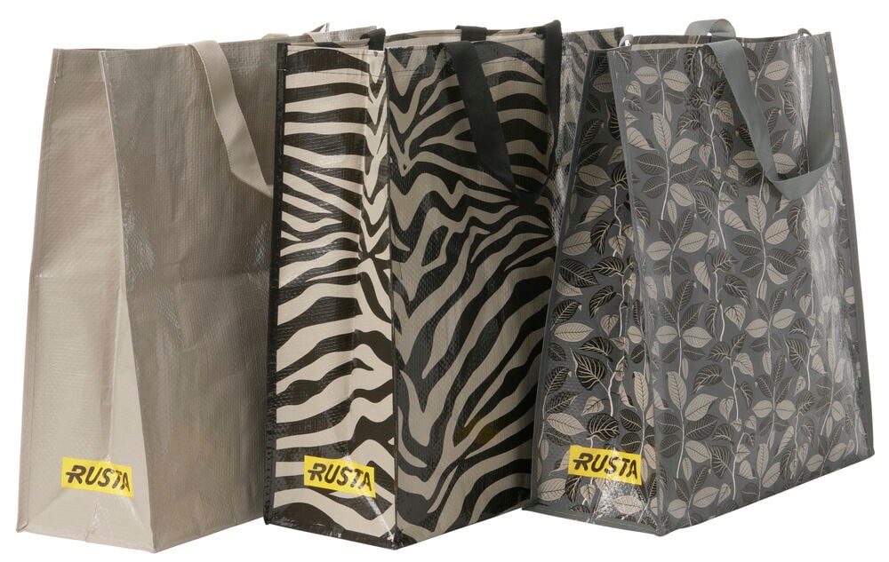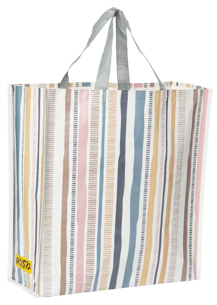 Mönstrad kasse med textilhandtag kommer med olika mönster och färger. Tillverkad av 60% återvunnen plast. 17x45x47 cm.