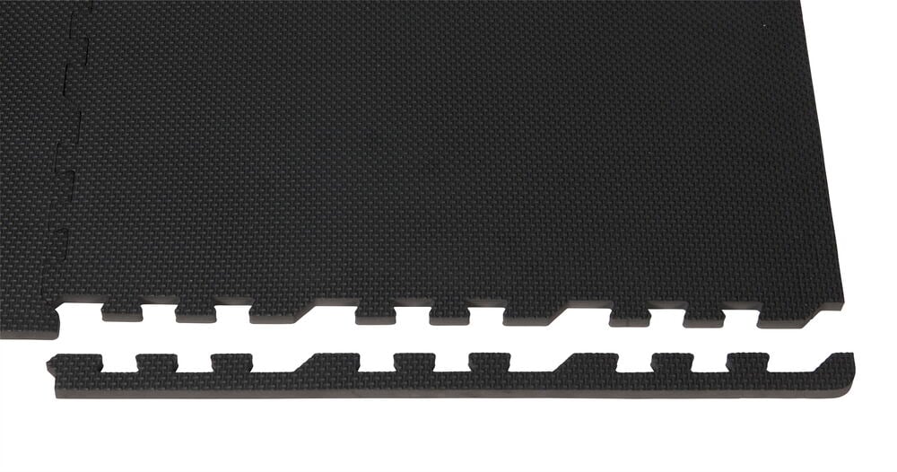 Vår påbyggnadsbara träningsmatta gör träningen hemma bekvämare samtidigt som den skyddar dina golv och dämpar ljud. Passar perfekt för exempelvis gymövningar på golvnivå, övningar med lösa vikter, stretching eller yoga. Bygg enkelt ihop en matta i rätt storlek utifrån dina behov. Plattorna har måtten 57x57 cm och förankras i varandra som ett pussel. I varje förpackning ingår 2 st plattor som kan monteras och monteras isär om och om igen utan att gå sönder. Mattan är tillverkad i Polyeten – PE. Tjocklek 12 mm.