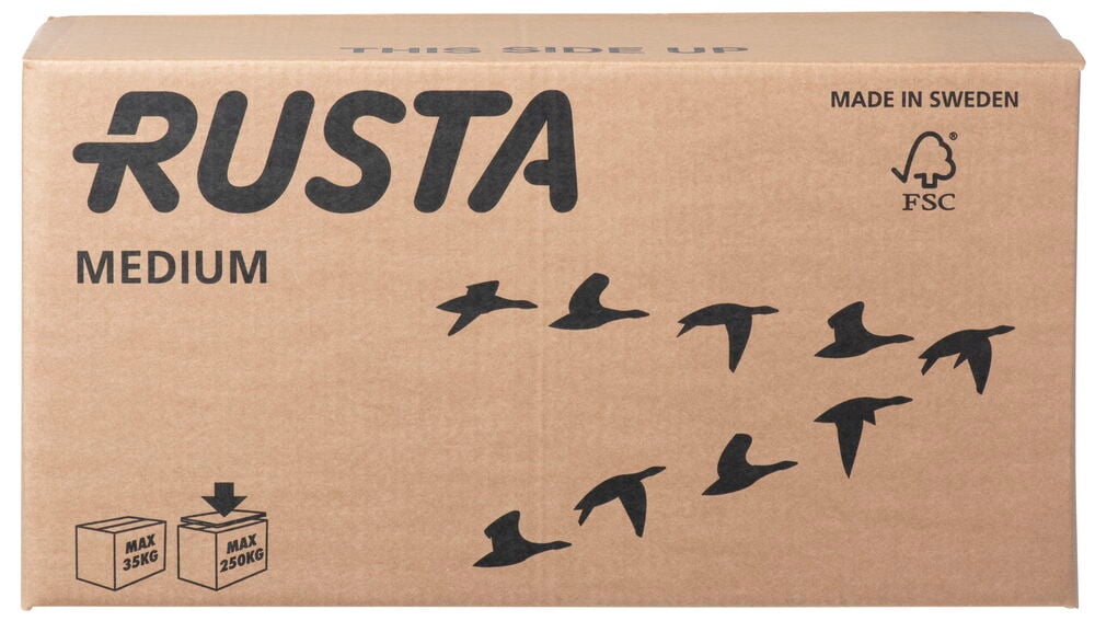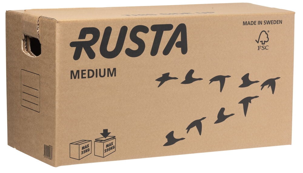 Flyttkartong med bekväma bärhandtag, antiglidbehandling och effektiv låsning. Maxvikt 35 kg. 50 liter. Tjockleken 4 mm. Invändiga mått: 56,5x29,5x30 cm, utvändiga mått: 59x30,3x32 cm.