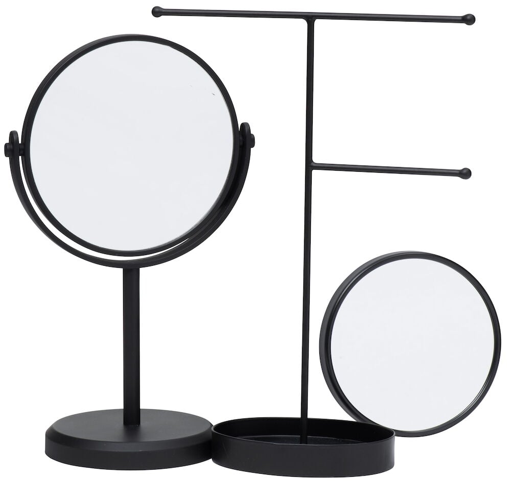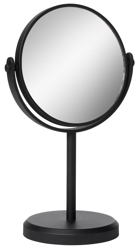 Liten, lätt och behändig spegel på fot som passar lika bra i sovrummet som i badrummet. Spegeln har glas på bägge sidor där ena ger en förstorad spegelbild. Perfekt för sminkning och rakning.