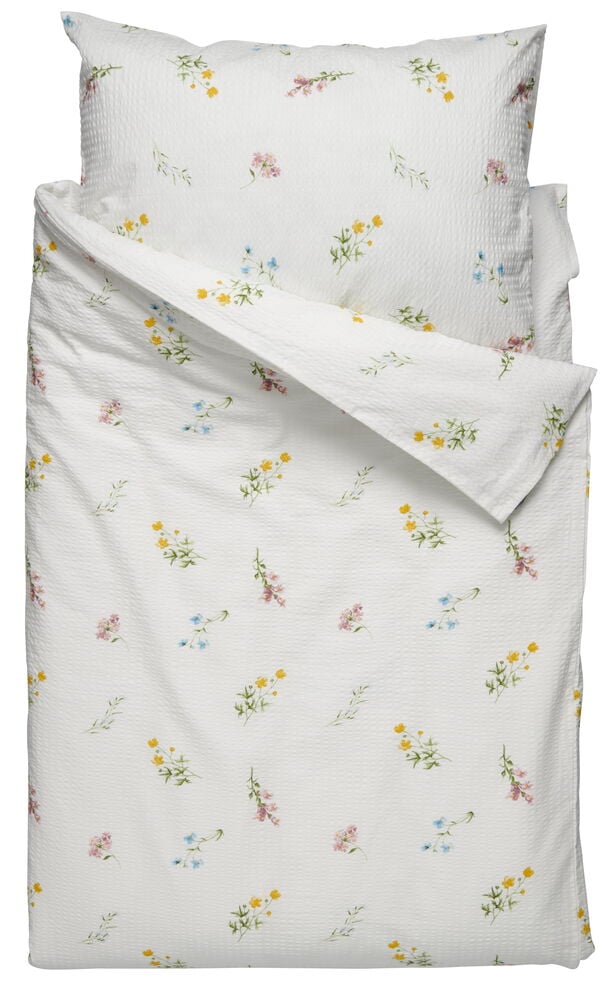 Bäddsetet innehåller ett påslakan i storleken 150x200 cm och ett kuddfodral som måttar 50x60 cm.