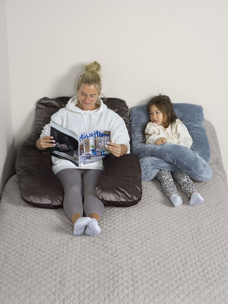 Kroppskudde i u-form med flexibel användning. Ger extra stöd när du sitter i soffan eller när du sover på sida eller rygg. Mjuk, flexibel och formbar fyllning. Plyschöverdraget är avtagbart och tål maskintvätt.