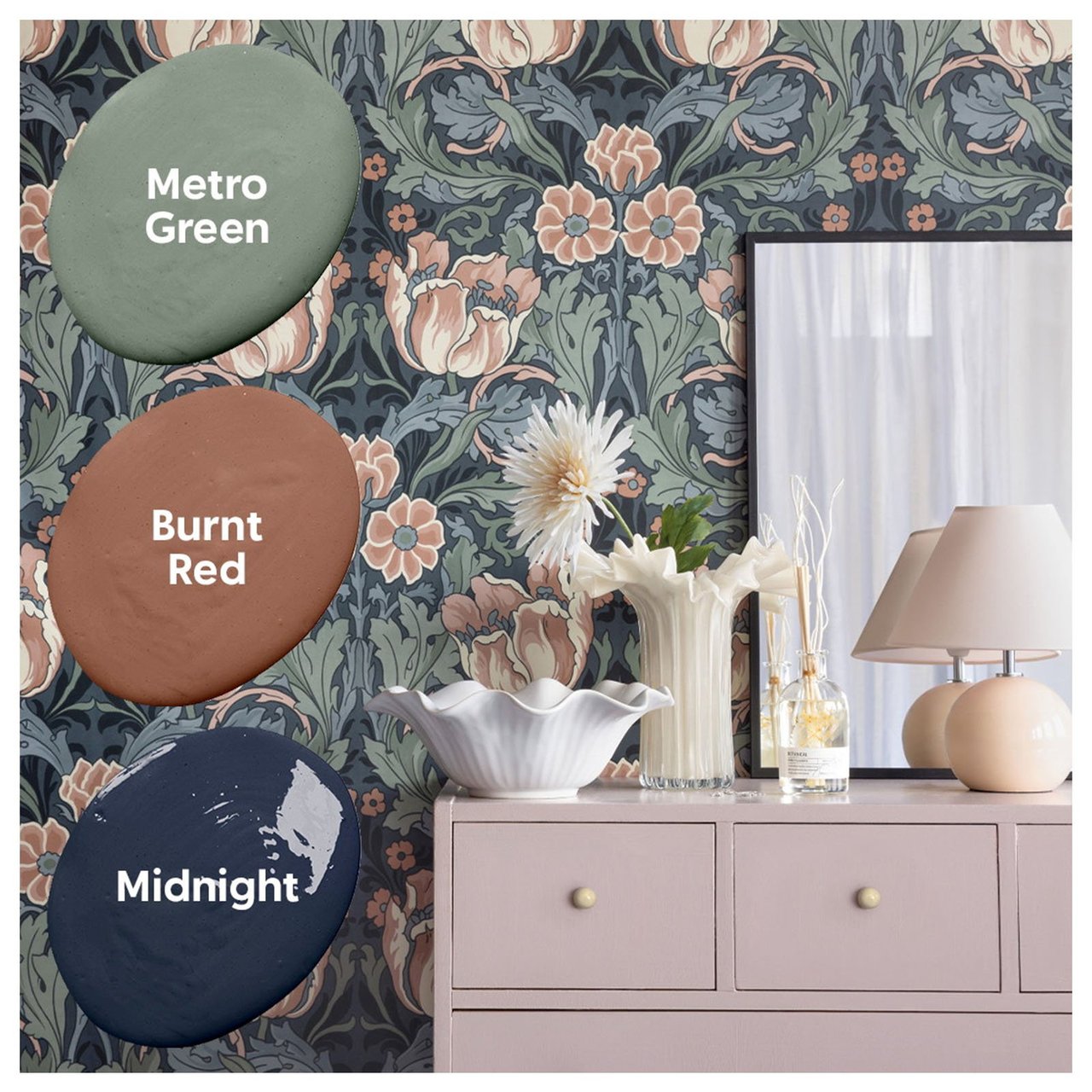 Tapeter kan lyfta vilket rum som helst, och för att ge rummet ännu mer karaktär är det fint att kombinera tapeten med en matchande kulör. Oavsett om du vill måla lister, dörrar, en intilliggande vägg eller kanske taket, finns det några knep för att hitta rätt matchning. Börja med att välja tapet, och försök därefter skapa en röd tråd med övrig inredning.