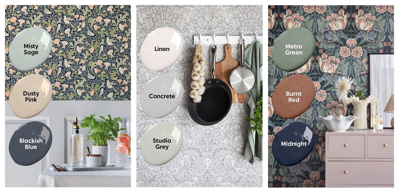 Att tapetsera ger en helt ny känsla till ditt hem, och extra effektfullt blir det om du matchar tapeten med rätt kulör på snickerier och intilliggande väggar. Vår inredare tipsar om hur du ska tänka och vilka färger som passar bäst till våra tapeter.