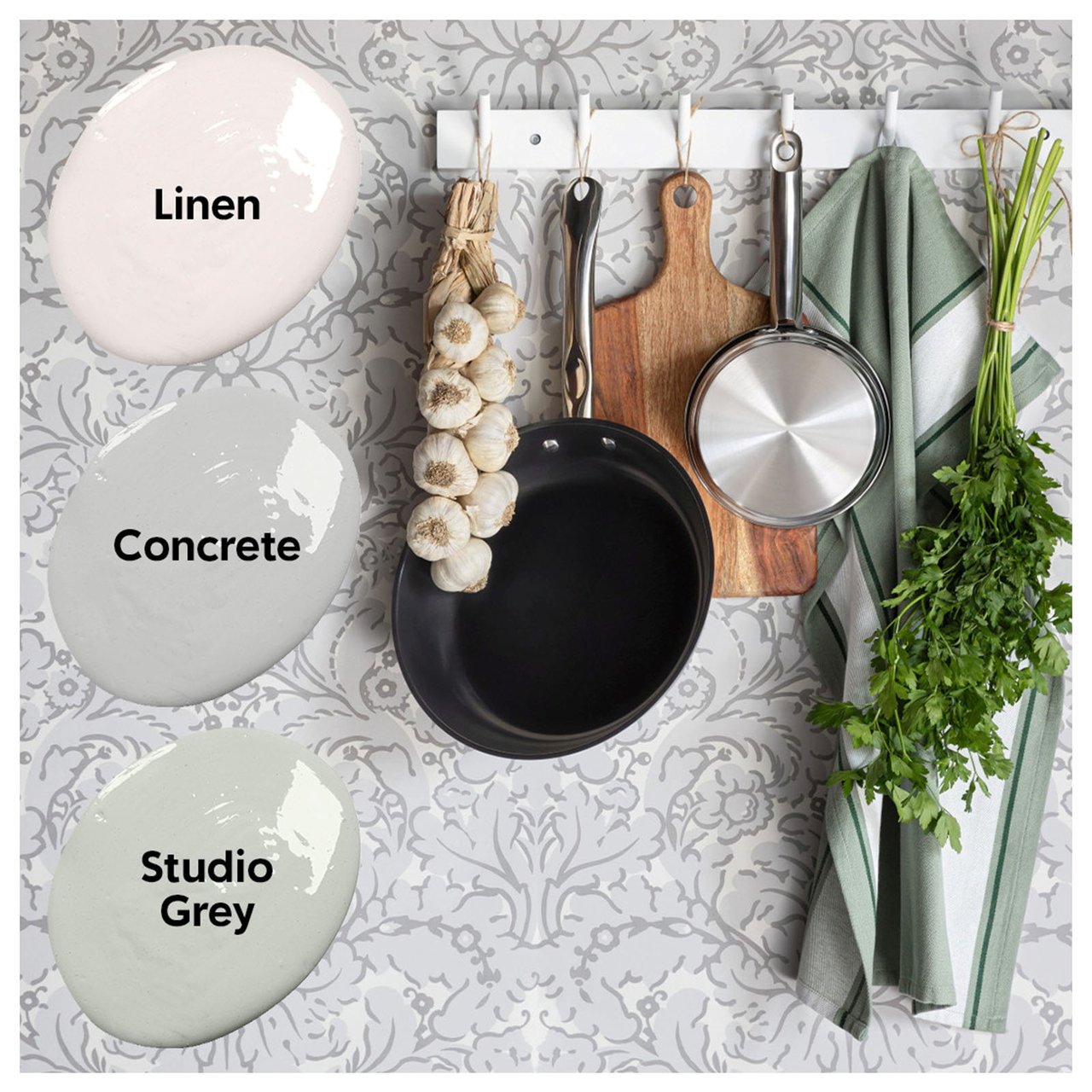 I köket väljer många en enfärgad eller klassisk tapet, kanske med blommor eller bladrankor, som gör sig fint både som fondvägg och i ett helt rum. Komplettera med en väggfärg som tar upp någon av tapetens mer neutrala inslag. Även köksluckorna kan målas i matchande kulör.